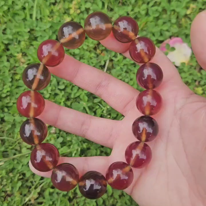 Authentic Blue Amber Bracelet - 15 mm beads (16 beads) - Reddish Brown TypeBlue Amber Bracelet – Natural UV Reactive Gemstone | Handcrafted Healing Crystal Jewelry | Rare Glow ✨ Natural Blue Amber Bracelet – Radiant Glow, Handcrafted with Love ✨Bring a soft, soulful energy to your day with our handcrafted Blue Amber Bracelets, made from ethically sourced Indonesian blue amber and lovingly...